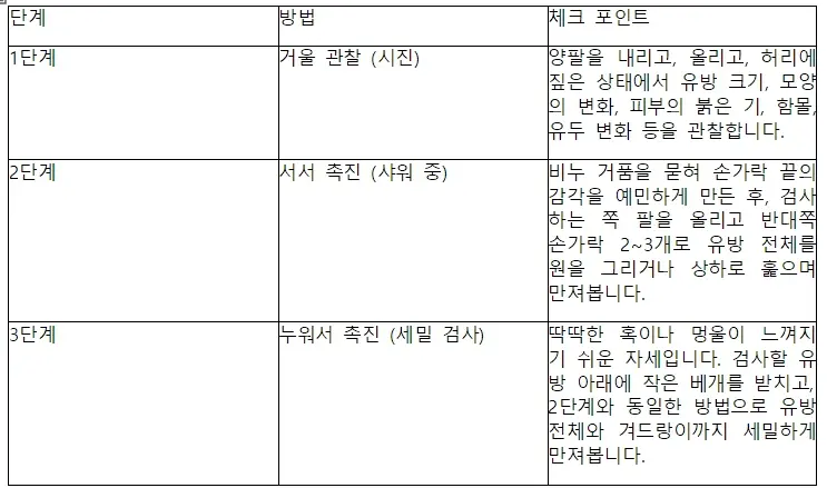 자가검진 방법이 어렵지 않으니 한번씩 꼭 해보시길 바랄게요.